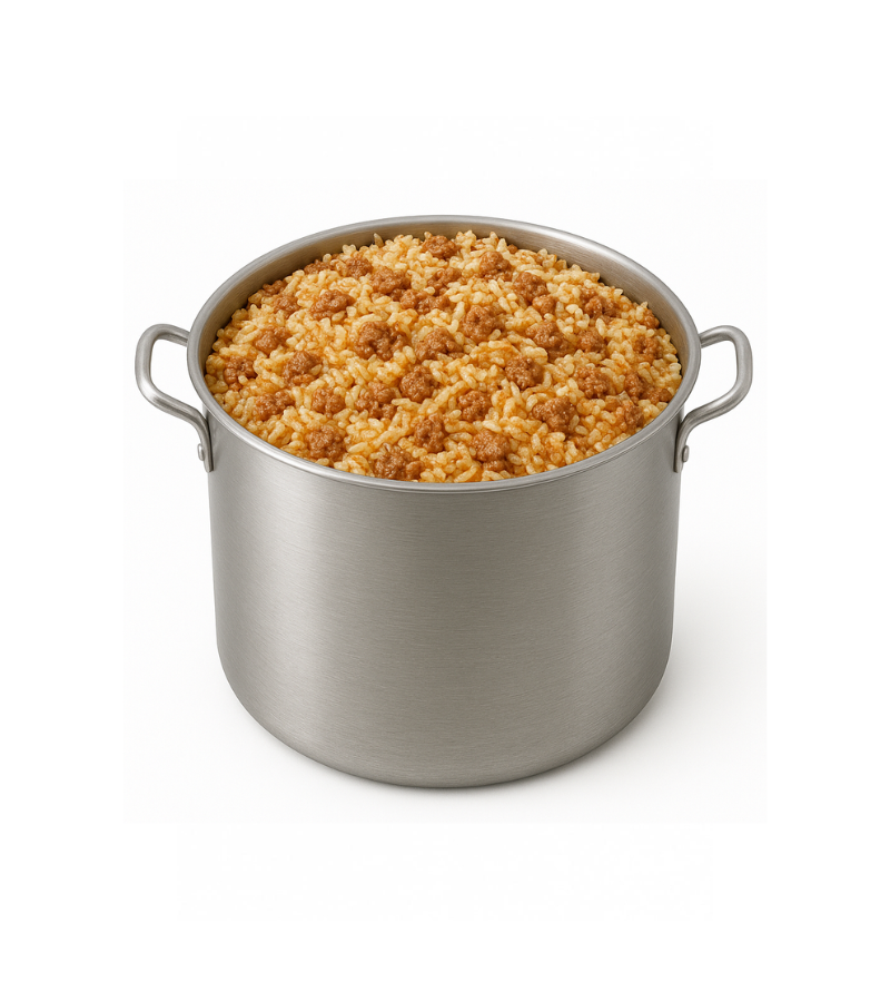 A filling, protein-enhanced rice dish cooked in bulk and ideal for feeding large groups in humanitarian, community, and emergency settings.